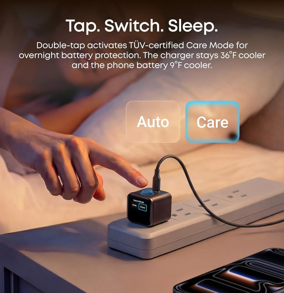 - Extends Battery Life: TÜV-certified Care Mode lowers charging temperature by up to 9°F compared to standard 45W chargers—ideal for overnight charging.